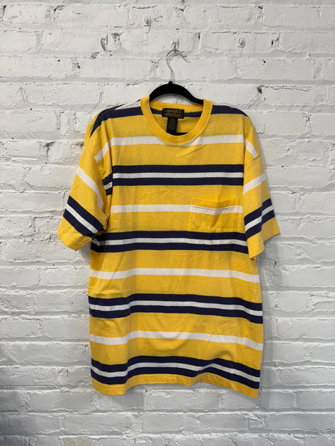 Vintage Yellow and Navy Horizontal Stripe Tee