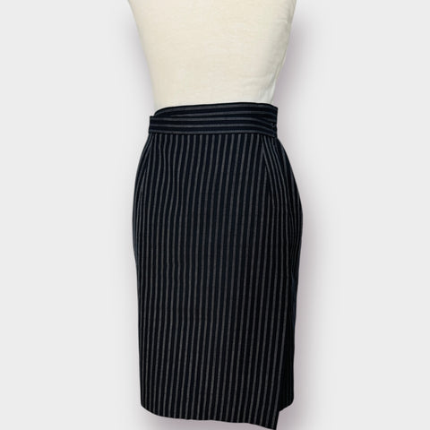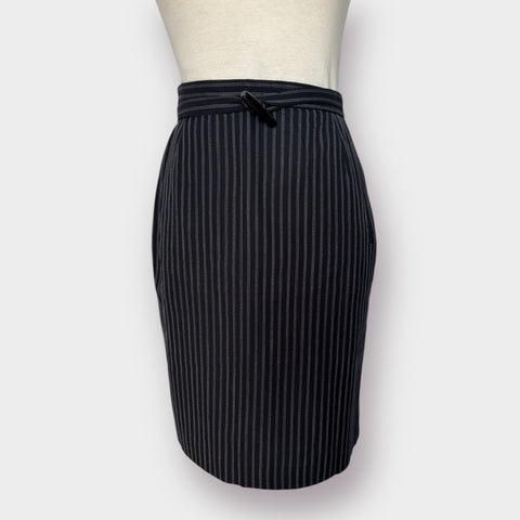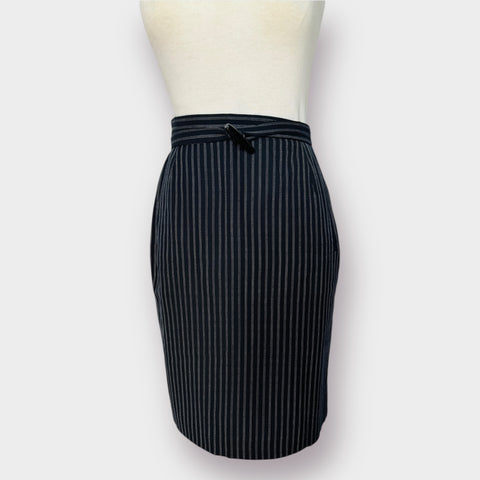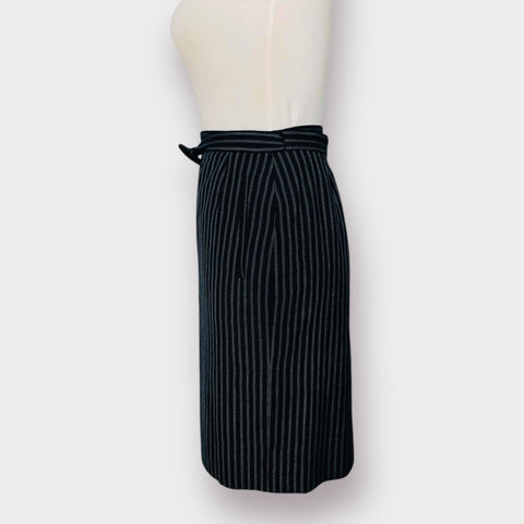 90s high waisted black white skirt. Office siren chic. Skirt wraps and has open flap on one side.
